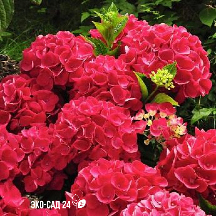 Гортензия крупнолистная огненно-красная (Red Baron) точно станет вашей любимицей и вы будете относиться к ней как к прекрасному сокровищу. Насыщенный красный, переходящиы в пурпурный оттенок соцветий притягивает и завораживает. Куст отличается своими компактными размерами и насыщенным цветом как листьев, так и побегов. Это точно будет яркое пятно на вашем участке. Стоит помнить, что крупнолистные гортензии, не смотря на работу селекционеров по выведению зимостойких видов, требуют укрытия на зиму. А поскольку цветущие почки закладываются на 3-4 узле от основания куста, то укрывать нужно повыше.